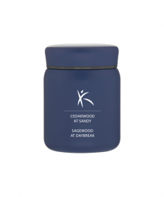 16.9 oz double wall 18/8 stainless steel thermal food container with copper vacuum insulation, matching threaded lid, threaded insulated lid, and rubber bottom. Individual gift box. Hand wash recommended. Do not microwave. Complies with FDA, Prop 65. 5.25" H x 3.875" W