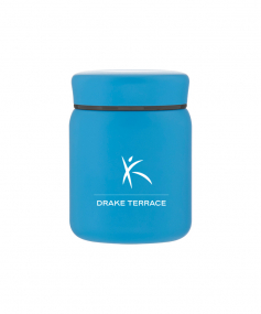 16.9 oz double wall 18/8 stainless steel thermal food container with copper vacuum insulation, matching threaded lid, threaded insulated lid, and rubber bottom. Individual gift box. Hand wash recommended. Do not microwave. Complies with FDA, Prop 65. 5.25" H x 3.875" W