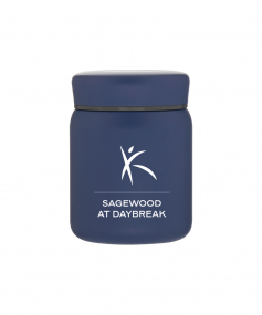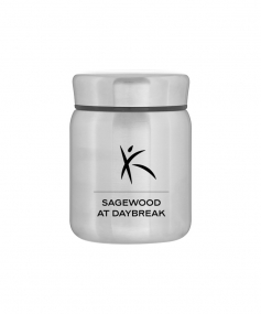16.9 oz double wall 18/8 stainless steel thermal food container with copper vacuum insulation, matching threaded lid, threaded insulated lid, and rubber bottom. Individual gift box. Hand wash recommended. Do not microwave. Complies with FDA, Prop 65. 5.25" H x 3.875" W
