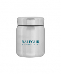 16.9 oz double wall 18/8 stainless steel thermal food container with copper vacuum insulation, matching threaded lid, threaded insulated lid, and rubber bottom. Individual gift box. Hand wash recommended. Do not microwave. Complies with FDA, Prop 65. 5.25" H x 3.875" W