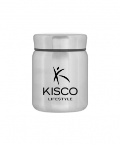 16.9 oz double wall 18/8 stainless steel thermal food container with copper vacuum insulation, matching threaded lid, threaded insulated lid, and rubber bottom. Individual gift box. Hand wash recommended. Do not microwave. Complies with FDA, Prop 65. 5.25" H x 3.875" W