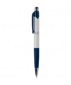 Crisp white barrels accented vibrant colored trim & bright silver accents . Guaranteed ultra-smooth cartridge & generous colored rubber grip provide writing excellence. Black or blue ink, blue ink default. Complies with Prop 65. 5.4" L x 5.4" L x 5" Diameter.