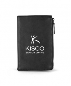 Stylish executive notebook with PU/split leather outer and suede inner cover. Features large zipper pocket (fits up to iPhone 7S Plus). Includes 80-sheet replaceable notebook. 5 3/4" H x 8 1/2" H