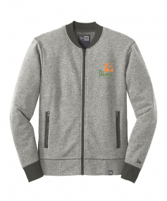 This jacket gives a nod to traditional baseball styling but is updated in super-soft French terry. Features French terry contrast rib knit collar and cuffs, woven New Era® patch label, exposed black nickel zippers. Includes contrast front zippered pockets with exposed zipper tape, embroidered New Era® flag logo on left sleeve, woven New Era® badge at hem.