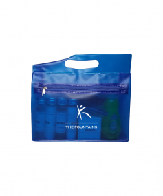 It's always the little things that are forgotten that are hard to find at your new place. We packed all the essentials into one handy tote. EST Shampoo, Conditioner, Body Wash, Lotion & Hand Soap, Old Spice and Dove Deodorants, Toothbrush, Colgate Toothpaste, Whispermint Mouthwash, Brush/Comb, Band Aids, Advil packet, Emergen-C Drink Packs, Alka Seltzer, Baby Wipes, Cotton Balls/Qtips, Tide Laundry Packet and Palmolive Dishwashing Soap. 9 1/2" W x 8" H x 2 3/4" D