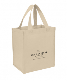 Made Of 80 Gram Non-Woven, Coated Water-Resistant Polypropylene. Great For Grocery Stores, Markets, Book Stores, Etc. 8" Gusset. Reusable. Recyclable. 17" Handles. Spot Clean/Air Dry. Complies with Prop 65. 8.0000" D x 10.5000" W x 11.7500" H