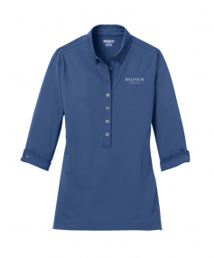 Break away from the ordinary in this button-down style polo that features cuffed 3/4 sleeves.