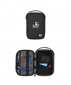 The ultimate travel organizer, the Vault holds cords, charging bricks, memory cards and more tech gear. Made with 900D poly two-tone with PU coating/200D poly lining. Padded grab handle Interior zippered pocket Elastic loops for cords and pens Two interior zippered mesh pockets. 9" H x 6" W x 2.5" D