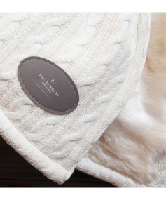 Customers will throw their hands up in excitement upon receiving this premium cable-knit cotton throw! Measuring 50" x 60", this 76 oz. white blanket is made from a blend of cotton (60%) and acrylic (40%) on the face with 100% polyester plush fur lining. It includes a zippered vinyl pouch for easy storage. An outstanding way to keep cozy on chilly nights, this warm and comfortable product can be customized with your logo and message for heightened brand exposure on a memorable keepsake. Complies with Prop 65. 50" W x 60" L