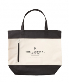 Constructed of natural colored 600D polyester material, this spacious nautical tote bag is perfect for boating, the beach, or everyday use. The large zippered main compartment provides ample space for all your essentials, while the side zipper on the front adds a stylish touch with its matching accent colors. The matching-colored zipper, bottom, and top give the bag a cohesive contemporary look. With 24" handles, this tote is easy to carry whether you're heading to work, running errands, or going on a weekend getaway. Made with durable material and stylish design, this tote is sure to become your go-to accessory for any occasion. 16" H x 19" W x 5 1/2" D