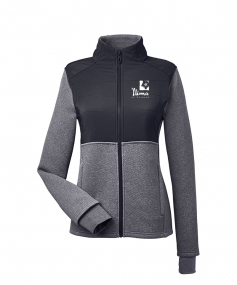 Pillow tech fabric: quilted, lightweight with warmth-retaining fill; Encore double-knit fleece with woven insulation for warmth and comfort; Molded center front zipper with branded zipper pull;