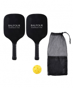 Introducing The Big Dill™ Pickleball Set - a complete package for pickleball enthusiasts. This set comes with two regulation-size pickleball paddles and one ball, featuring an ergonomic grip design for comfortable play. The black paddle, when laser engraved, reveals the beautiful wood underneath, adding a touch of elegance. Packaged in a convenient carrying case, it's ideal for schools, camps, sports teams, and anyone seeking a fantastic pickleball experience. Get ready to elevate your game!"