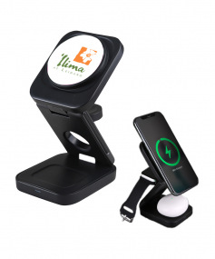 The Trifecta is your all-in-one charging solution, elegantly designed to power up your essential devices simultaneously. This versatile charging stand features a powerful 15W magnetic wireless phone charger, dedicated 5W Apple Watch charging station, and a 2.5W wireless earbuds charging pad. Perfect for hybrid work environments, the Trifecta's ingenious folding design transforms from a full charging station to a compact travel companion.